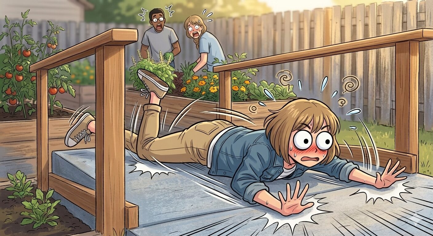 まんまとスロープにうつ伏せに倒れ込んだわぁ〜
